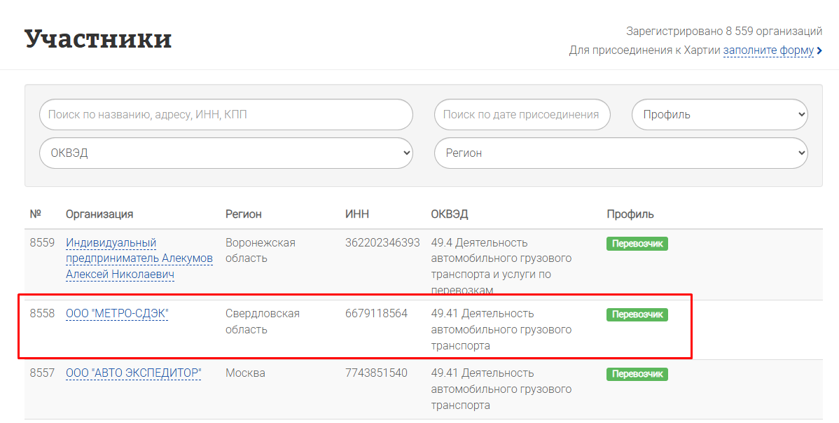 Хартия объединяет компании, которые отказываются от незаконных схем в перевозках и налоговой оптимизации, соблюдают законодательство о массо-габаритных нормах и системе «Платон», обеспечивают официальное оформление сотрудников и прозрачность в документообороте.